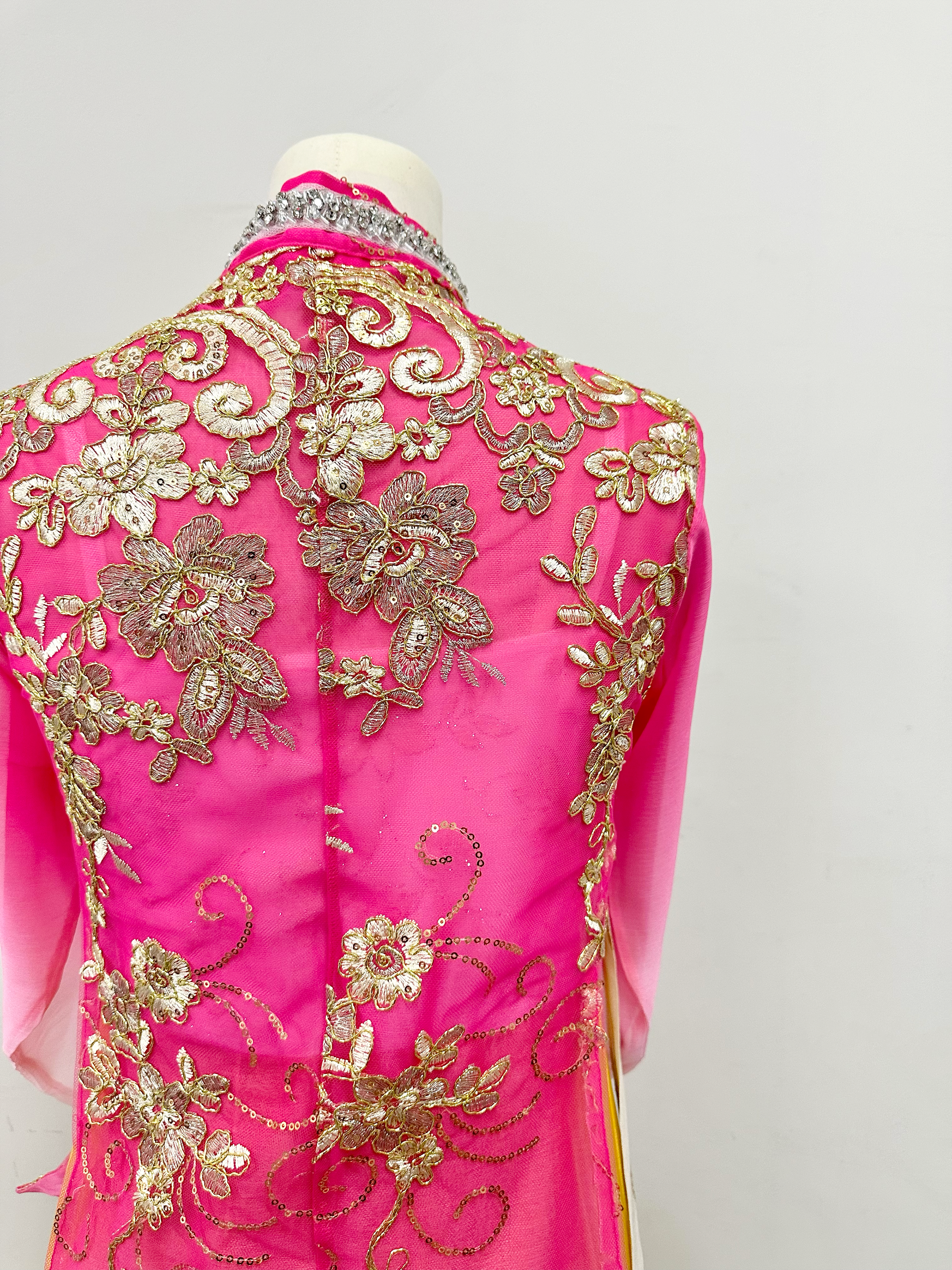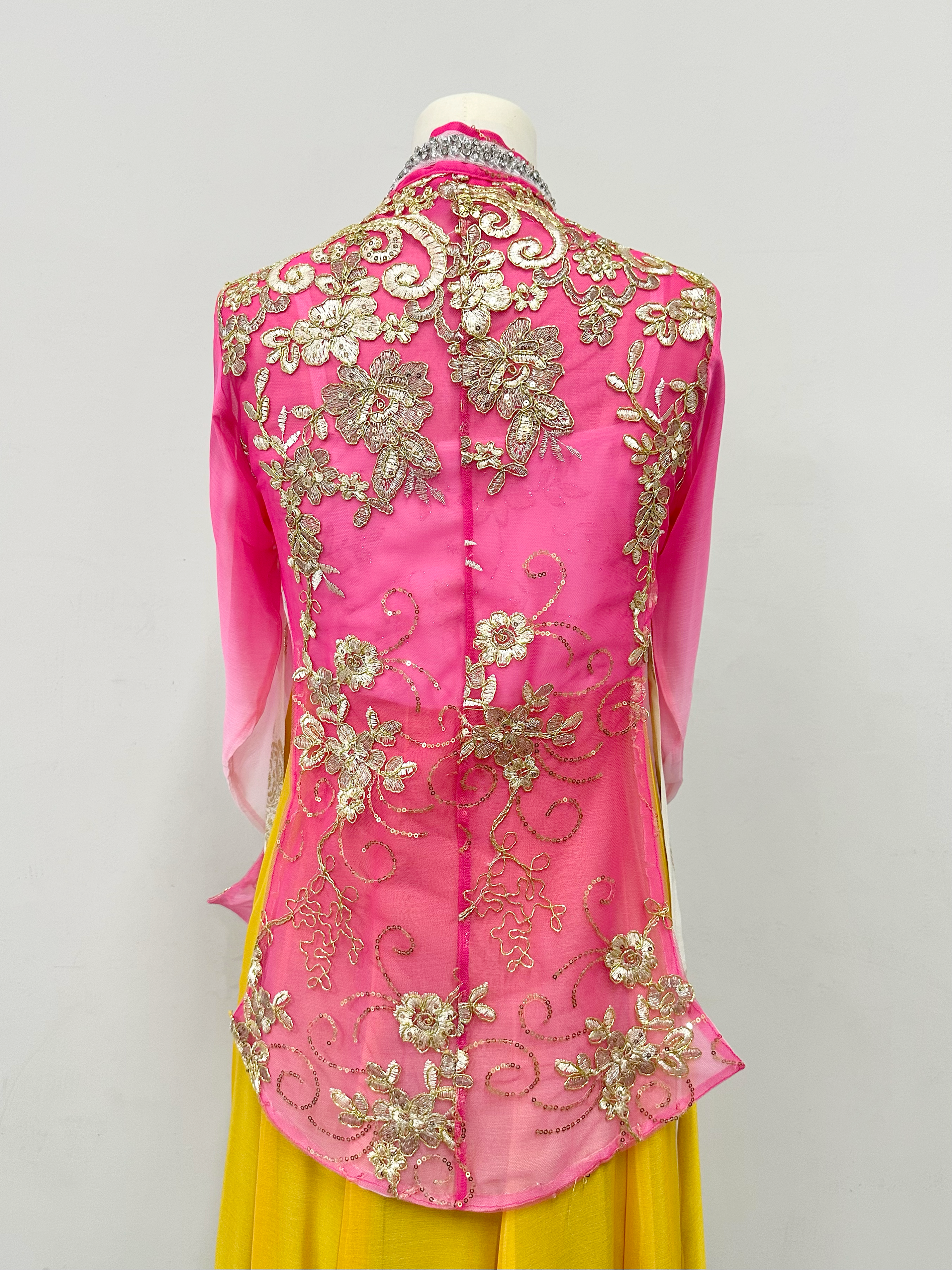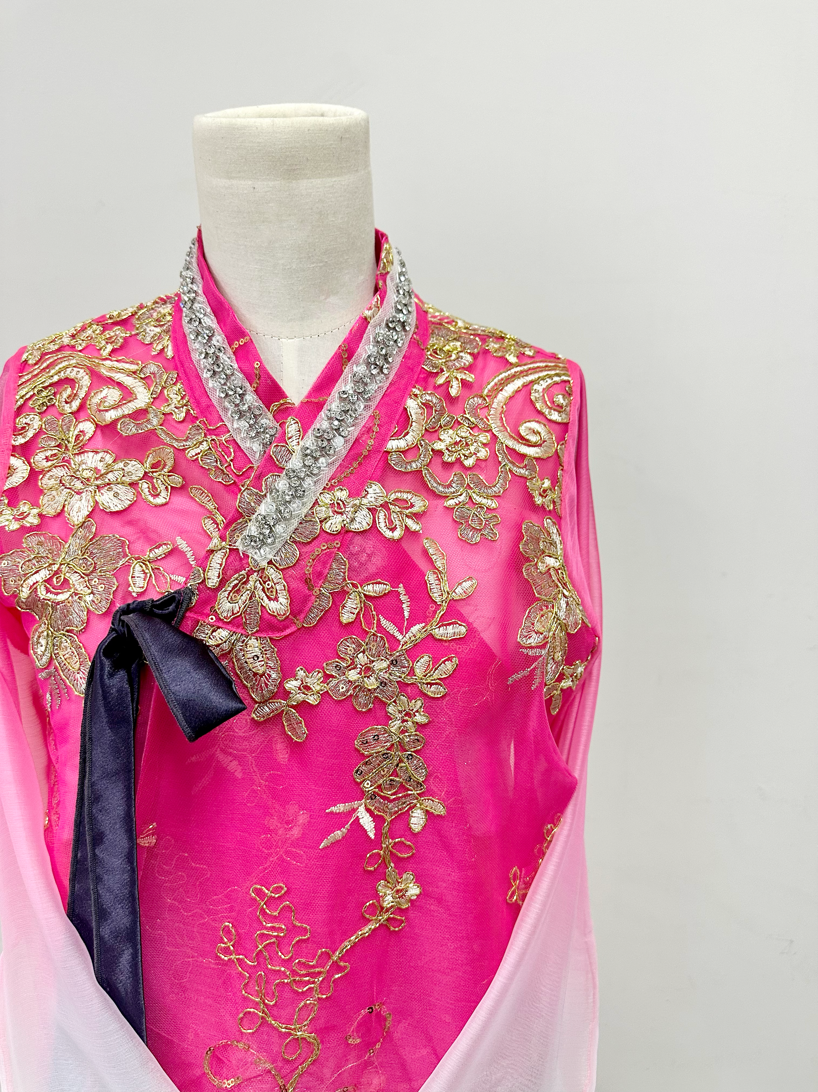 한국 전통의 우아함을 유지하며, 핑크빛과 금빛 조합을 사용해 더욱 세련된 당의 입니다.