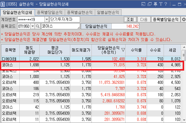 그래도 좋은 수익을 본게 코아스하고 다른 종목입니다.