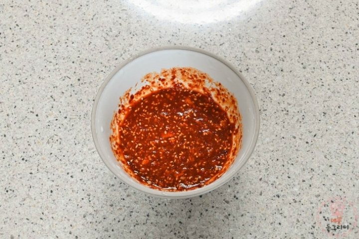 간장 3T, 고춧가루 2T, 매실청 1T,