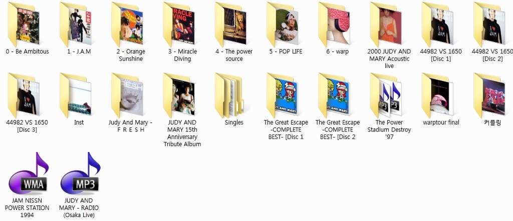 mp3 들이예요. 와프투어니 파워스타디움이니 하는것들은 DVD에서 음원만 뽑은 mp3들!