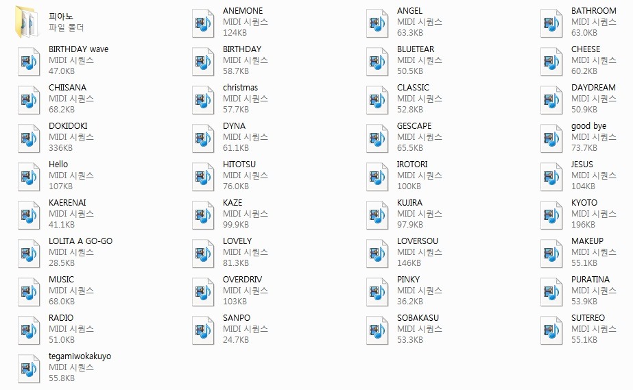피아노라고 된 폴더는 피아노 버전으로 편곡된거예요. 역시 미디파일!