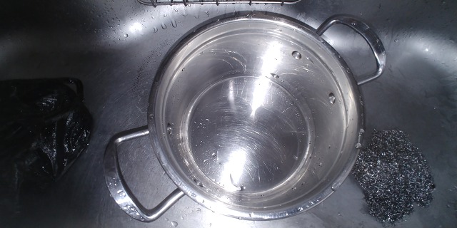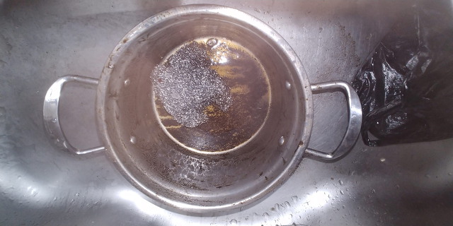 힘들이지 않고 탄 솥을 원상복구하였습니다......