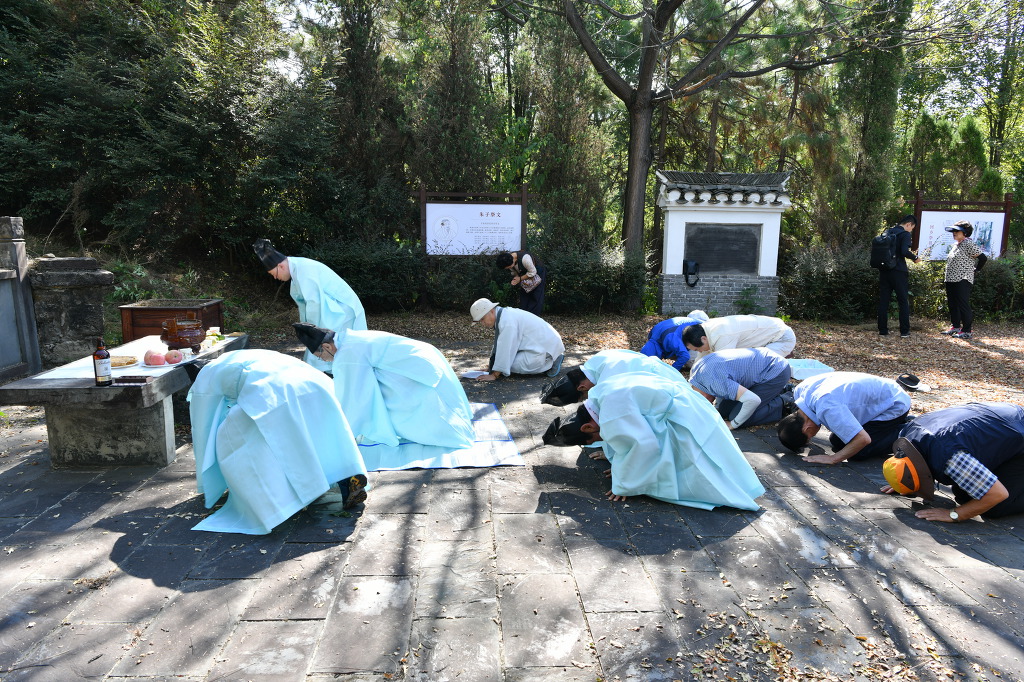 문공산 으로 이동하여 문공산위에는 주자의 5대 조모 정씨묘 참배 및 한청정사 그리고 주자가 20세에 고조모 정씨 묘를 참배하고 장나무 23그루를 심었는데 지금은 16그루가 남아있다,
