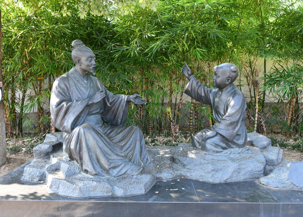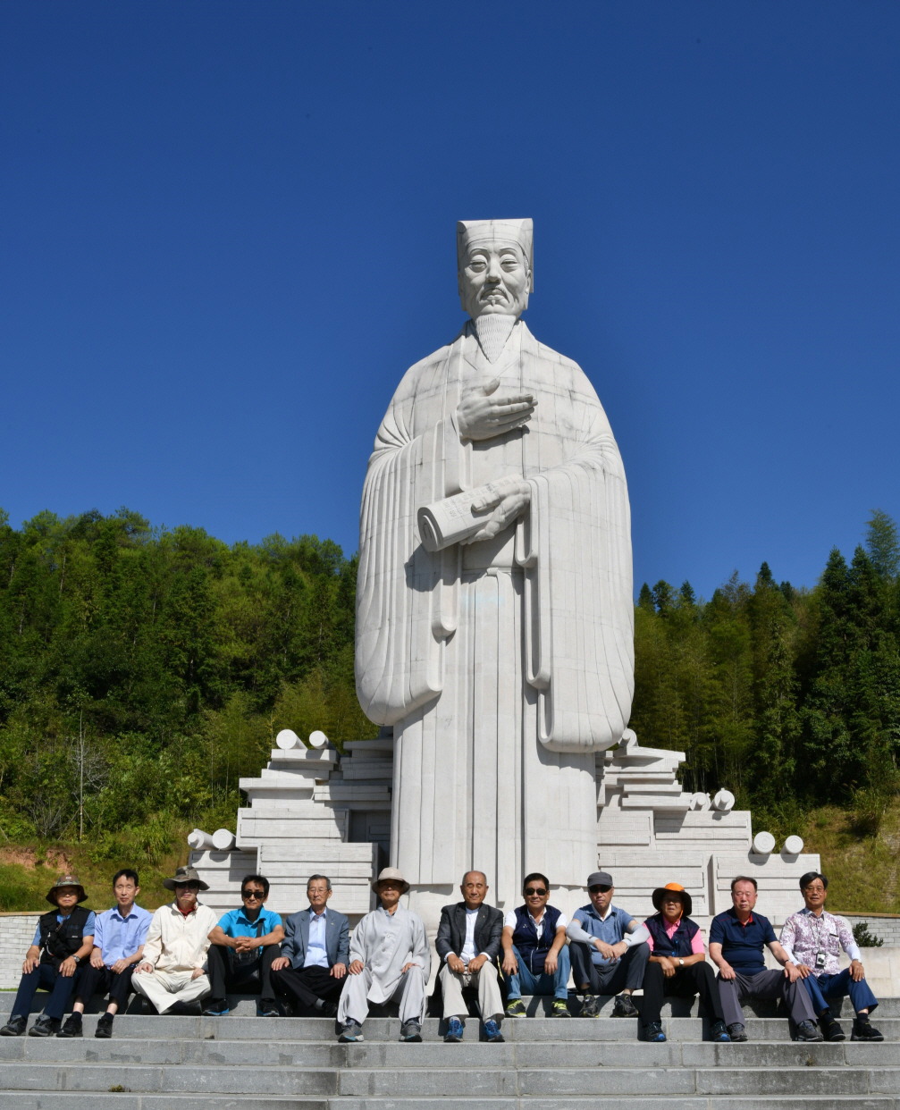 09월 23일 호텔에서 조찬후 주자가 45여년을 거주하던 오부리에 도착하여 주자가 거주하던 주자고거 자양루 흥현서원 주자가 걸었던 주자항 오부리 근처에 대형 주자의 석상 높이는 71자 오르는 14계단이고 모든 것이 주자의 일생과 맥을 같이 하지요, 크고 웅장합니다, 朱子故居 관리인 姜立煌에게 해설을 잘해주었다,