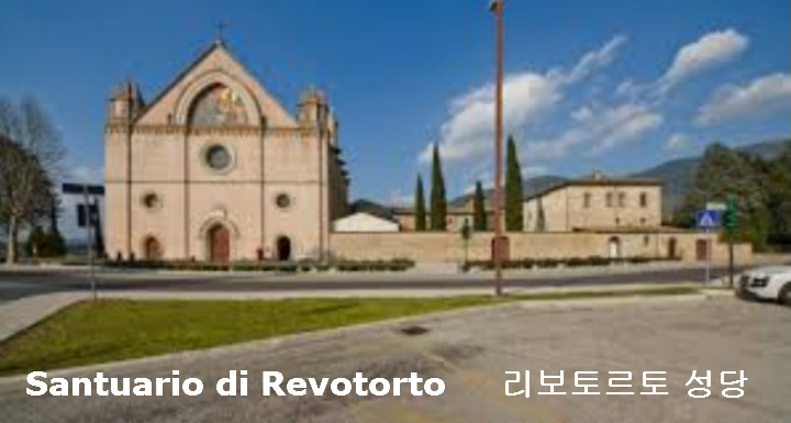 이곳에서 미사를 봉헌하는 일정이랍니다. 그리고 윗마을로 이동, 호텔 투숙한다는군요. '리보토르토 성지(Santuario di Rivotorto)' Sanctuario del Sacro Tugurio di Rivotorto ‘리보’는 강이란 뜻이고, ‘토르토’는 꾸불꾸불이란 뜻이어서, 리보토르토는 꾸불꾸불한 강이라는 뜻이다. Rivotorto 성당