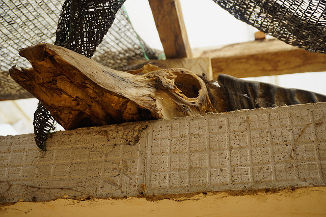 잡은 개의 머리는 지붕 위에 올려두는데요, 개의 영혼이 잡귀를 몰아내고