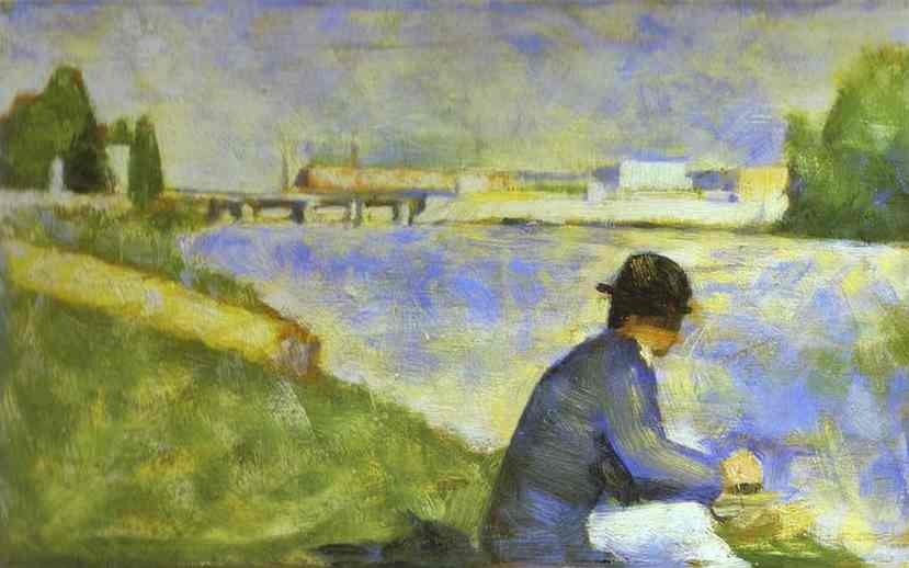 쇠라는 여기에서 강을 바라보는 사람, 낚시질을 하는 사람이나 목욕하는 사람, 뱃사람을 드로잉으로 남겼다.