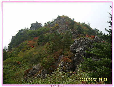 치밭목산장 가다본 좌측 천왕봉.우측 중봉모습