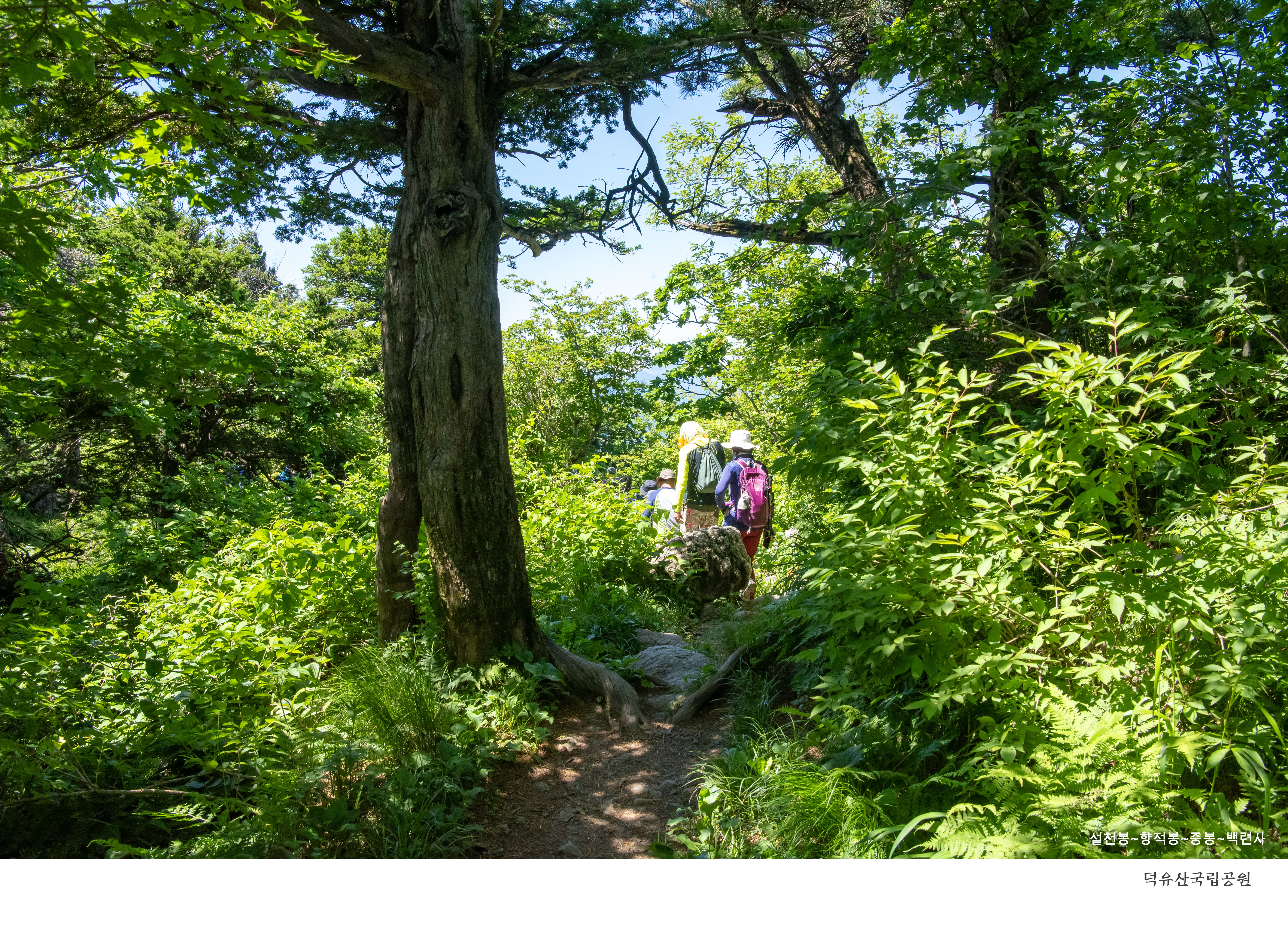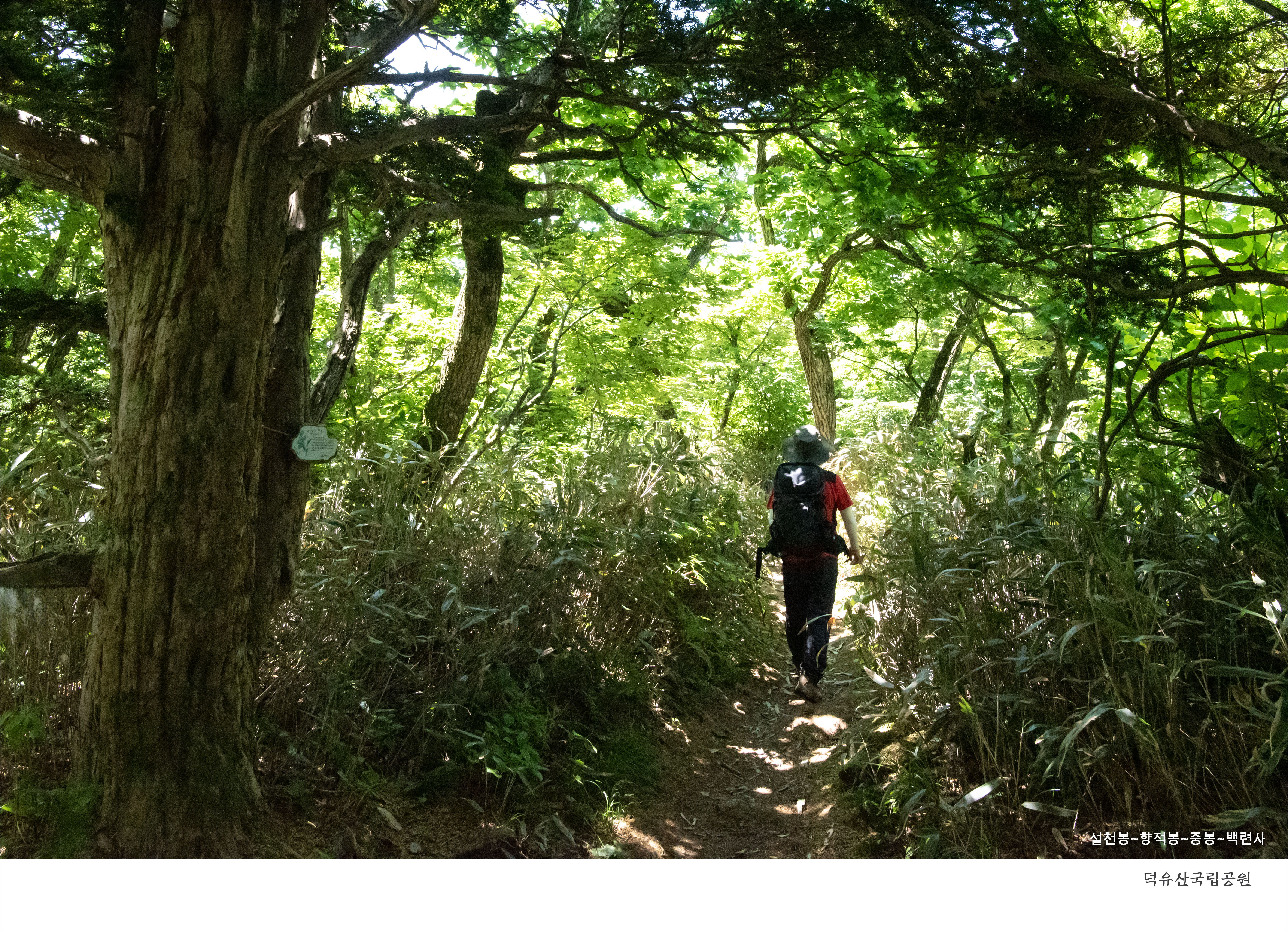 ♤ 설천봉 ~ 향적봉 ~ 중봉 ~ 오수자굴 ~ 백련사 ~ 구천동 주차장 : 약 13km(설천봉까지 케이블카로 약 10분간 이동)