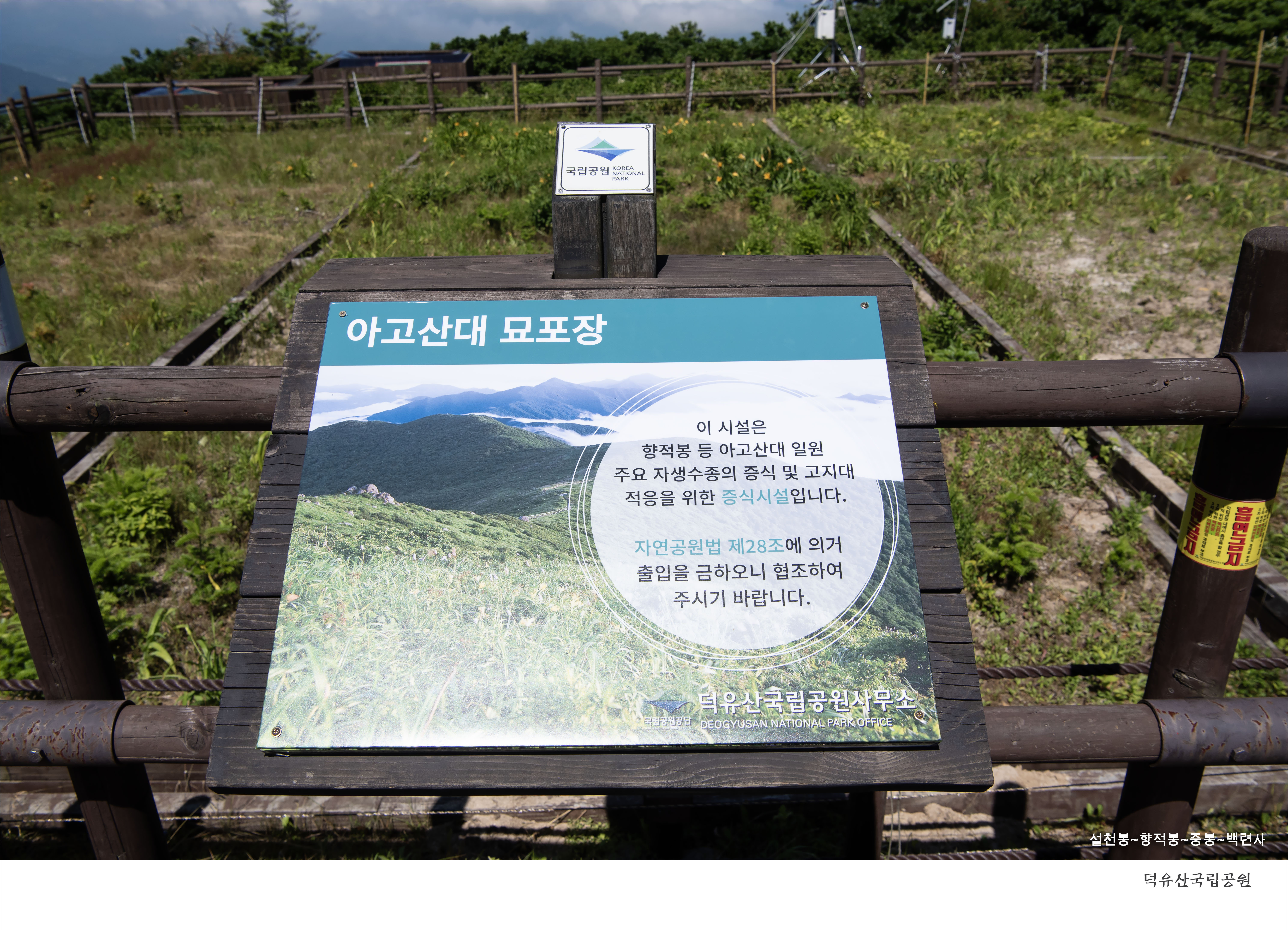 덕유산은 남한에서 네 번째로 높은 산(향적봉 1,614m)으로 아고산대 생태계의 보존가치 또한 높으며, 북쪽으로 흘러가는 금강과 동쪽으로 흐르는 낙동강의 수원지이기도 하다
