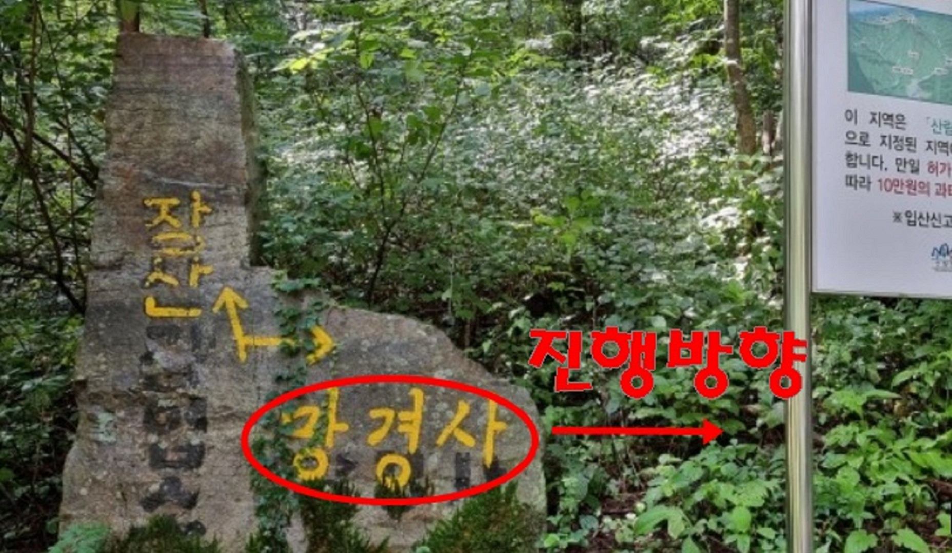 망경사에서 식수를 준비하고 대웅전과 요사채 사이로 난 길을 따라 20여분 올라가면 산제당이 있으며 이 곳에서도 식수를 준비할 수 있다. 여기에서 잠시 쉼을 하고 너덜지대 곁의 급경사길을 올라가면 주능선 서봉사이의 안부에 도착한다. 이 오름길은 여름에 숲이 우거지면 길 찾기가 애매하므로 군데군데 달려있는 표지기를 확인하면서 찾아오르면 길을 잃을 염려가 없다. 안부에서 동쪽 주능선 길을 따라 정상으로 향하다 보면 숲길인가 싶으면 바위지대가 나타나고,바위지대는 좋은 전망대 역할을 하며 산행의 피로를 덜어준다.