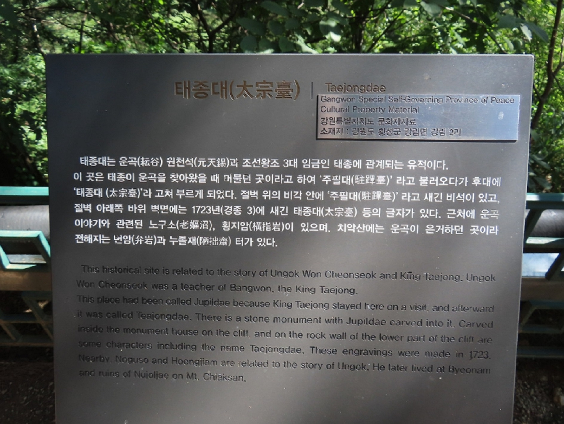 태종 이방원이 스승 운곡을 찾은 강림리엔 태종대 건립 원주시 학곡리와 횡성군 강림리 교류하던 옛길