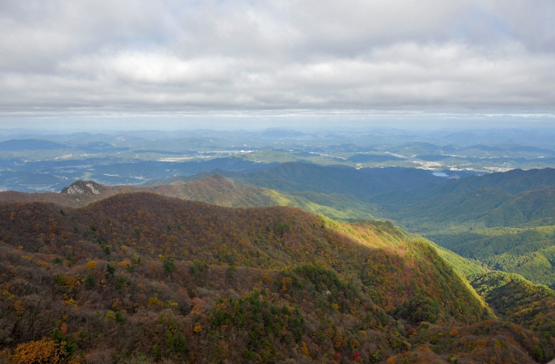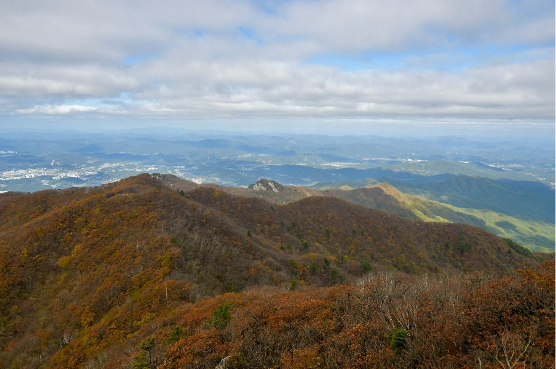 ▲치악산 태백산맥의 오대산에서 남서쪽으로 갈라진 차령산맥의 줄기인 원주의 명산 치악산 주봉인 비로봉(1,288m)을 중심으로 남으로 향로봉 (1,043m), 북으로 매화산(1,084m), 삼봉(1,073m) 등의 1000m가 넘는 고봉들이 남북으로 웅장한 산군을 형성하고 있다.