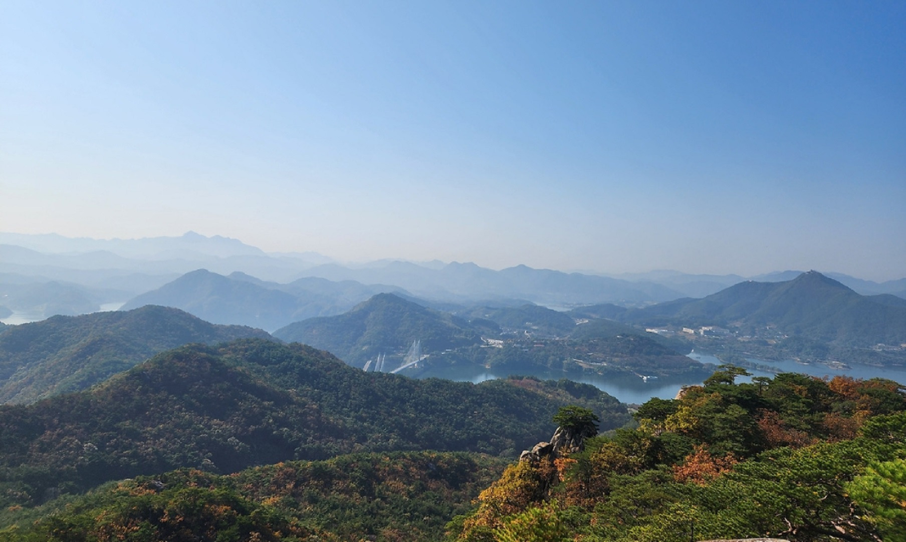 능선에서 바라보는 충주호의 풍경이 가히 일품이다.