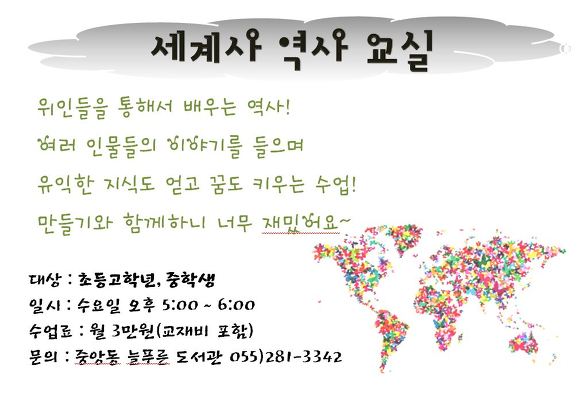 창원, 중앙동, 늘푸른, 세계사, 창의역사, 박선생, 도서관, 작은도서관, 평생교육센터,