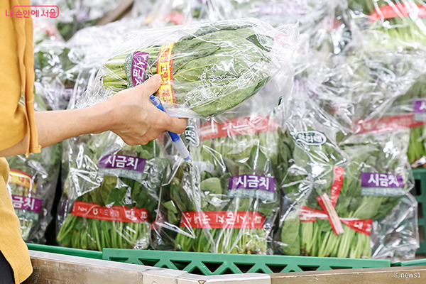 서울의 한 마트에서 시금치를 살펴보는 시민