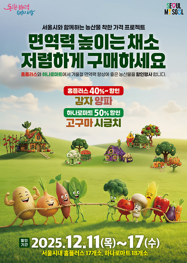 서울시는 “이번 행사는 올해 마지막 물가 안정 추진 행사로, 시민들이 일상에서 자주 찾는 농산물을 부담 없이 준비할 수 있도록 구성했다”며, “서울시는 앞으로도 시민 밥상 물가를 지키기 위한 실효성 있는 정책과 지원을 지속해 나가겠다”고 말했다.