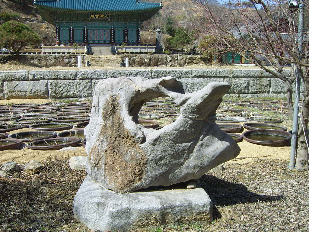 백련이 핀다는 넓은 연지와 도량 여기저기 제법 많은 함지에 담겨있는