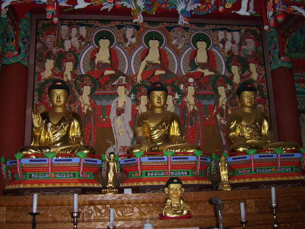 대웅보전 삼존불(좌로 아미타불, 석가모니불, 약사여래불)