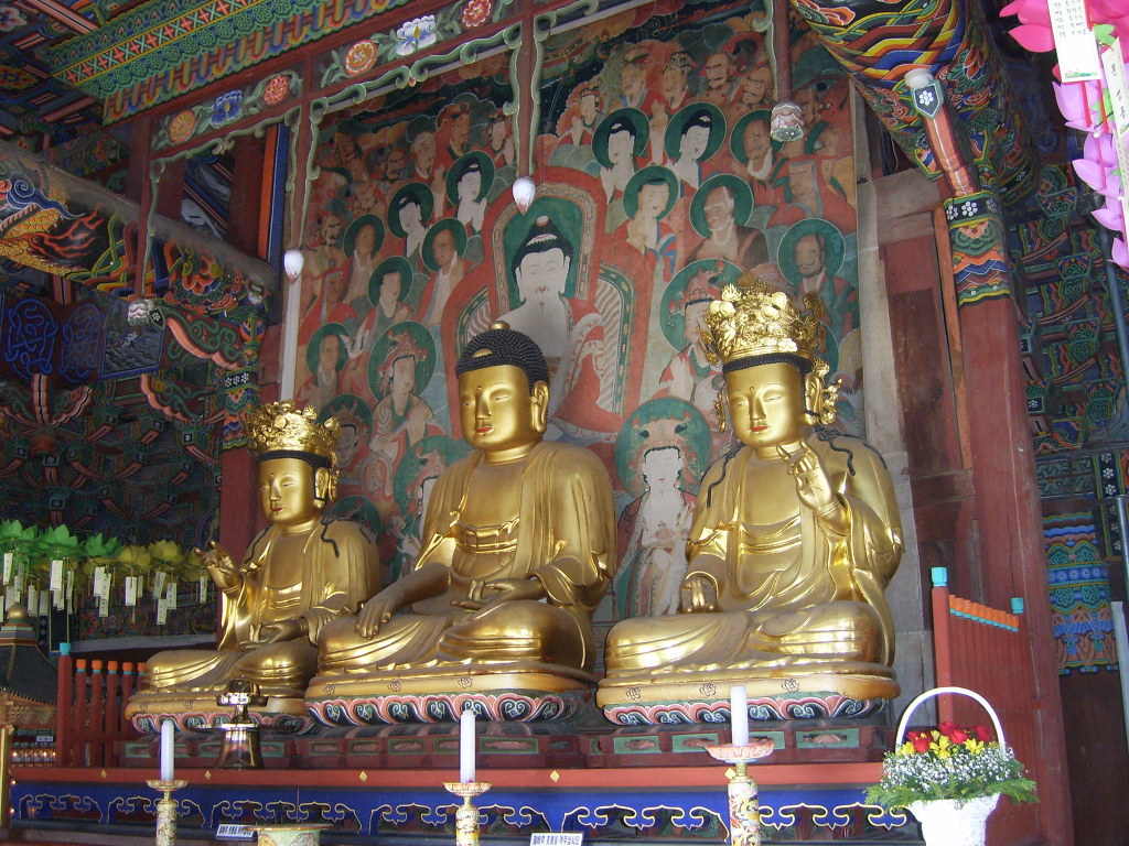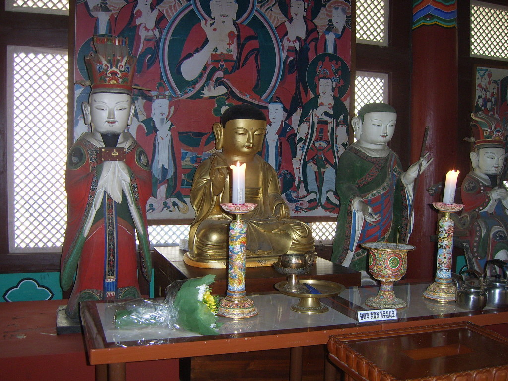 대웅전(大雄殿)에 봉안한 석가삼존상(釋迦三尊像)은 광해군 7년(1615)에 조성된 불상으로 임진왜란이후 불상으로는 비교적 대작에 속한다.