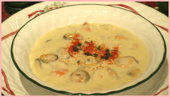 5. 크램차우더 위에 다진 파슬리와 칠리 파우더를 뿌려준다.