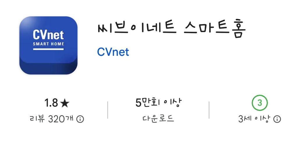 4번째 첨부사진에 게재된 앱 (씨브이네트스마트홈)을 설치하여 실행해보았으나 우리 아파트는 등록이 되어있지않아 사용불가입니다