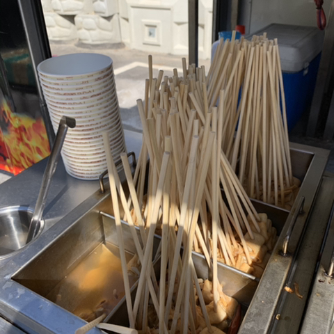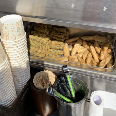 분식차 구성은 떡볶이+어묵+튀김2종+순대로 진행되었습니다! 떡볶이와 순대는 높은 곳에 있어서 사진을 찍을 수가 없었어요😓