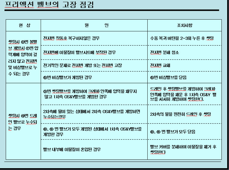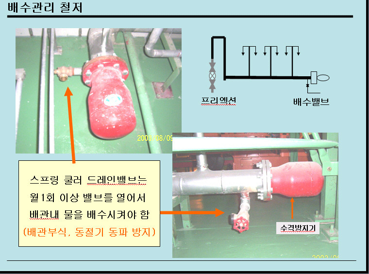 이때 2차측으로 넘어간 시험수는 자동으로 배수됩니다. 정기적으로 시험하시고 평상시는 폐쇄 유지하십시오. |