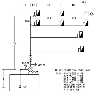 (그림 1) 옥내소화전설비의 양정계산 例