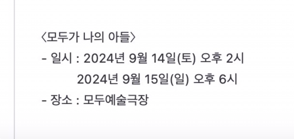 [티켓오픈 안내] <모두가 나의 아들> 2024년 9월 3일(화) 오후 2시 인터파크에서 작성자다니엘|작성시간24.08.22|조회수259 목록 댓글 0 글자크기 작게가 글자크기 크게가 맨씨어터 트윗터 포스트:https://x.com/man_theatre/status/1826457380886106309?s=61&t=jjp_0mB2rnfXsMlOfuZHFA 다음검색 현재 게시글 추가 기능 열기 북마크 공유하기 신고 센터로 신고 댓글 댓글 0 댓글쓰기 답글쓰기 댓글 리스트