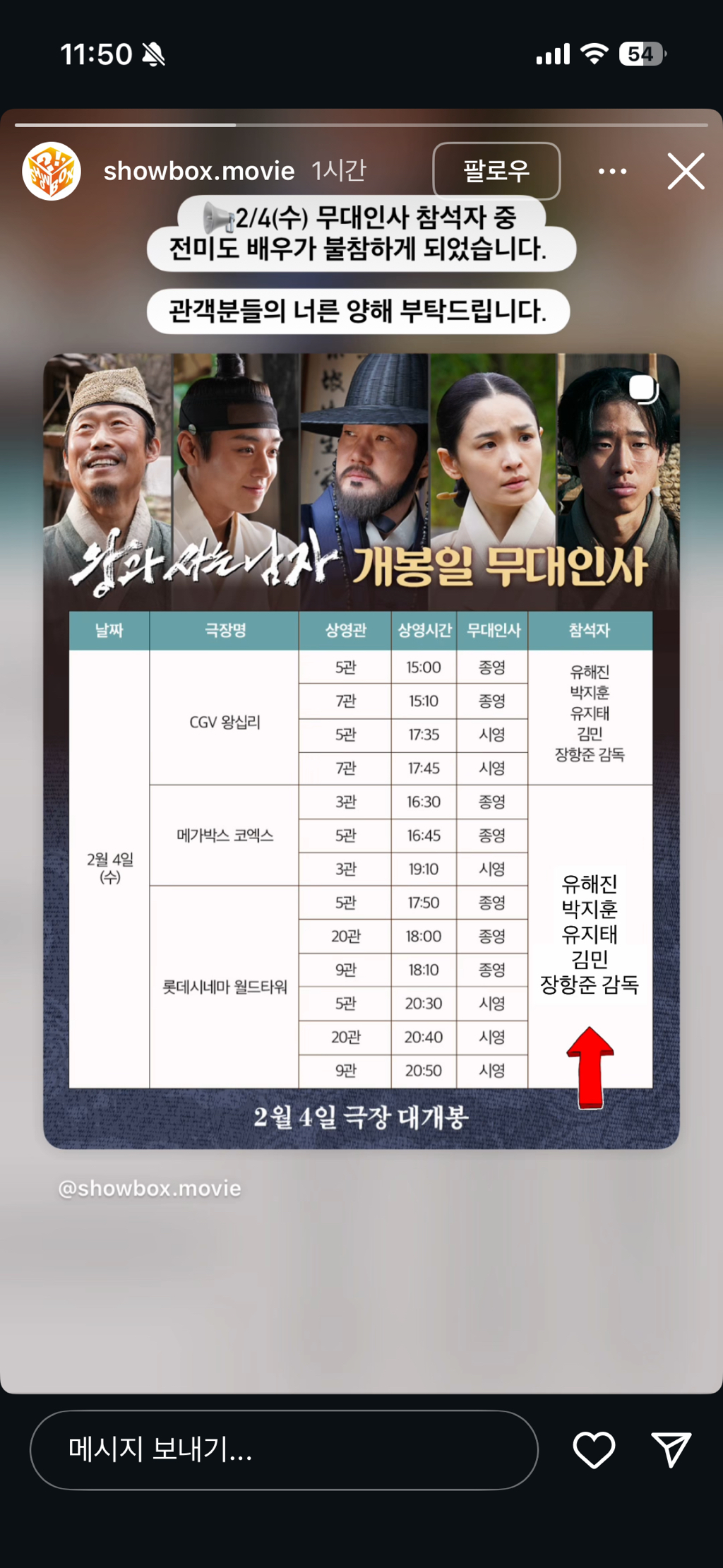 무대인사는 전일 자정까지만 앱 상에서 취소가 가능하고