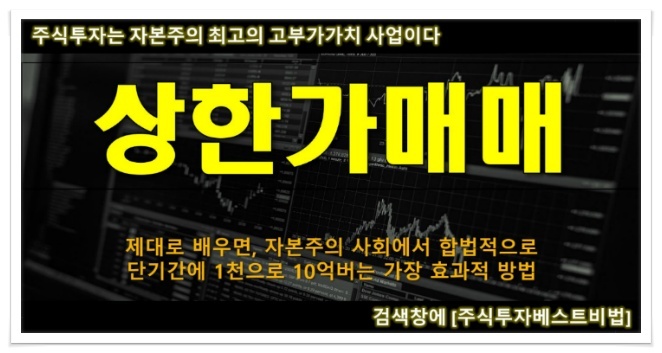 따라서, 투자자라면 반드시 알아야 하는 방법이 바로 상한가매매법이다.
