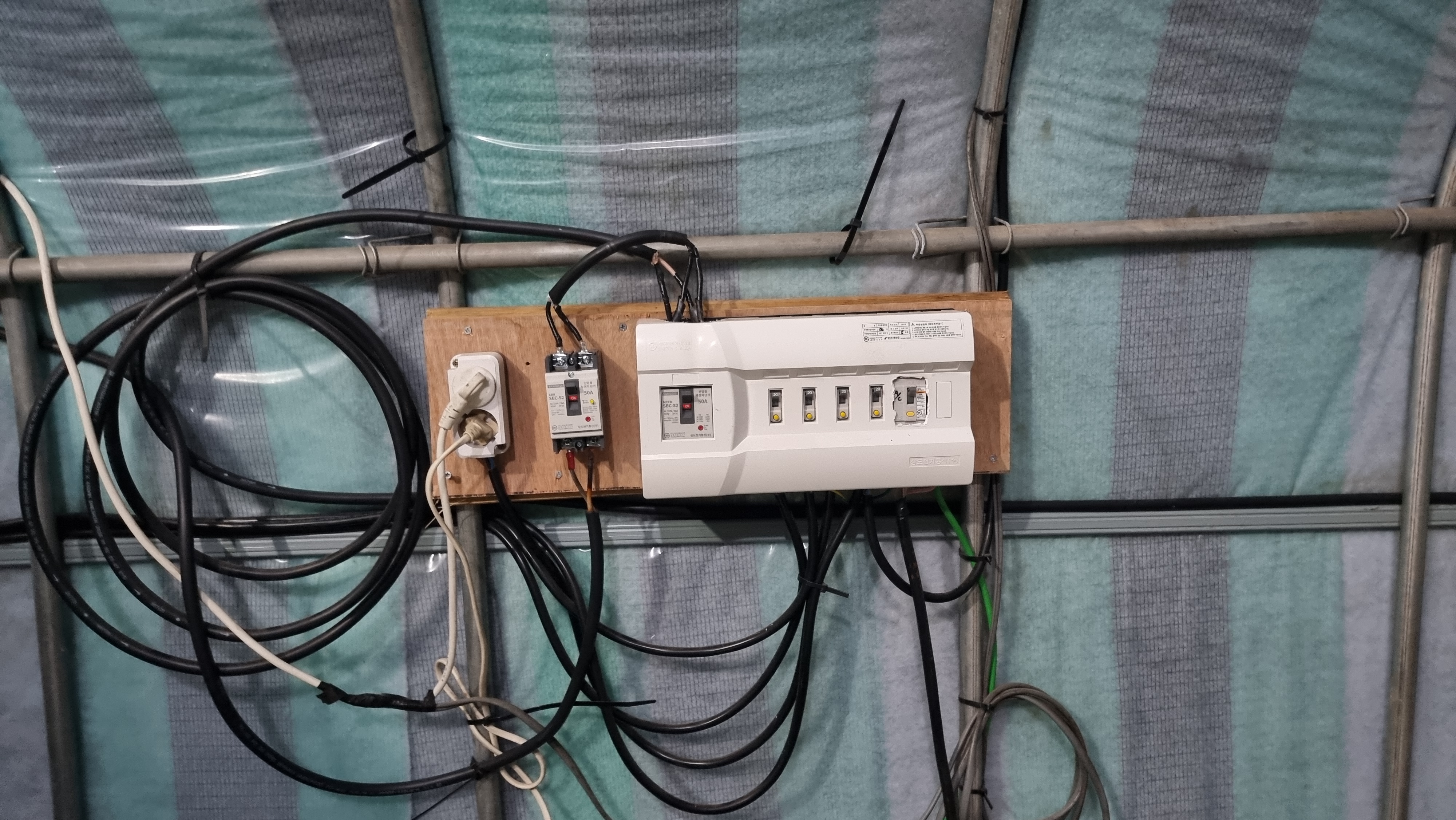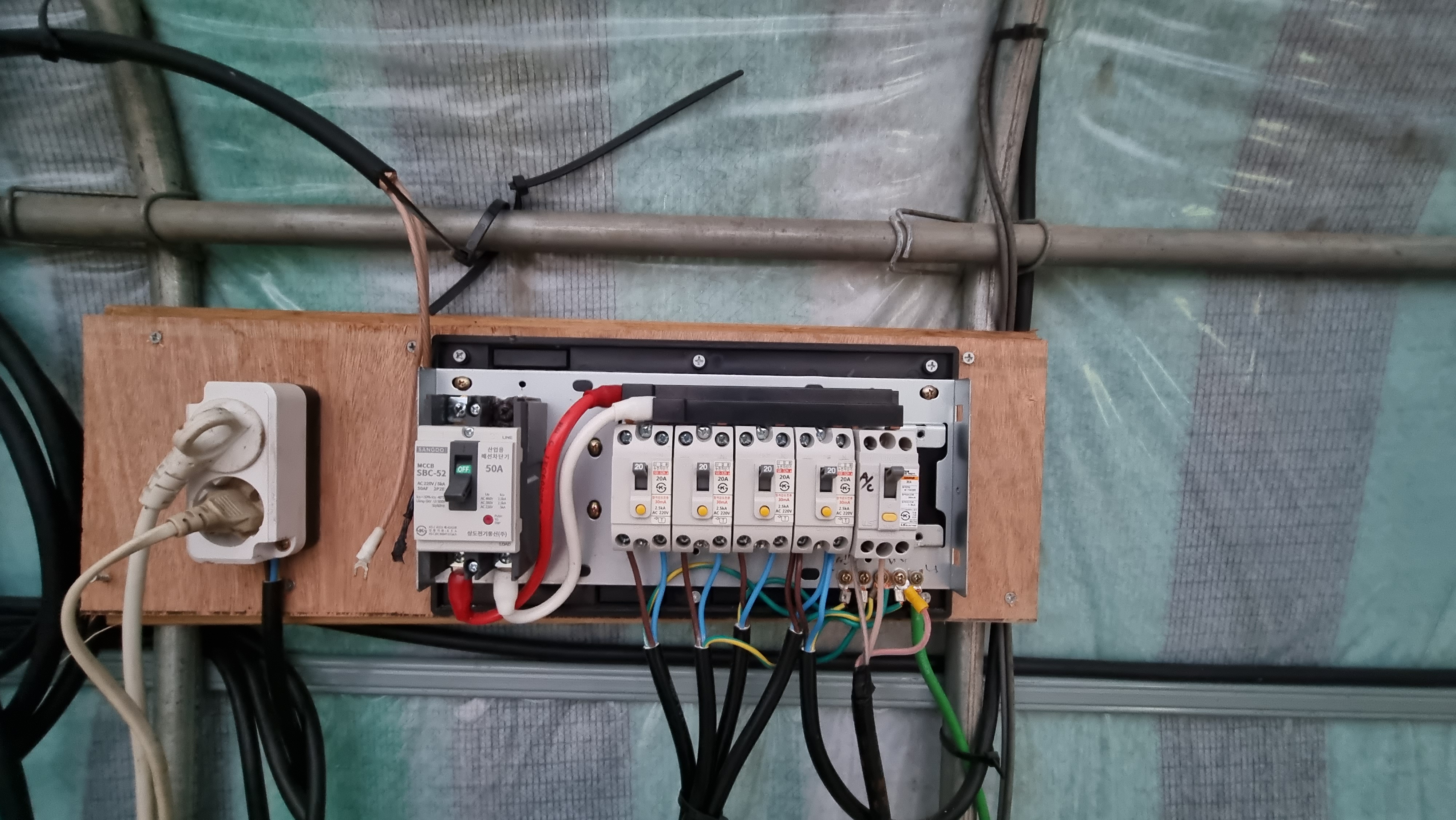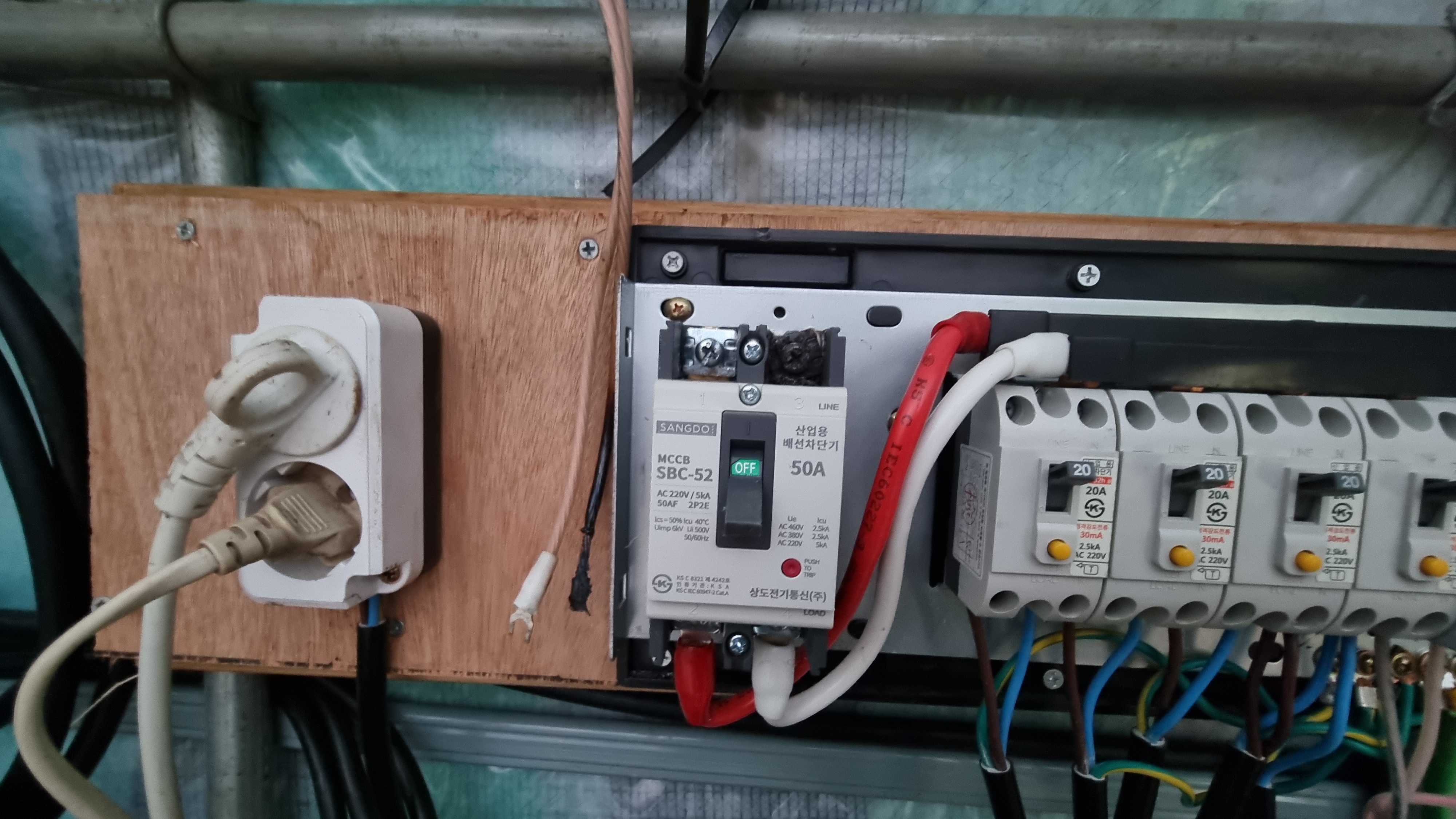 50a 누전차단기에 들어오는 선과 고추건조기 선을 같이