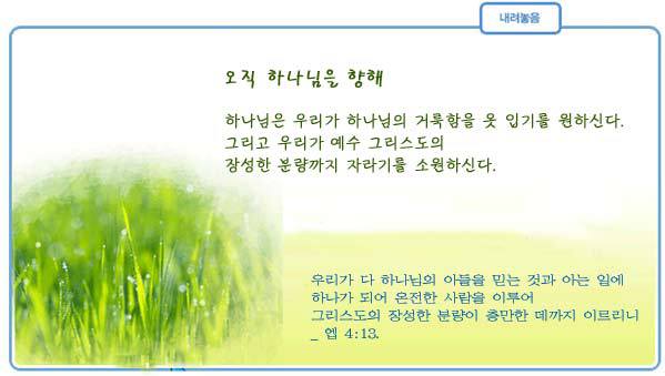 | 말씀과 기도로 주님과 깊은 교제생활이 이루어 지기를 소망합니다 |