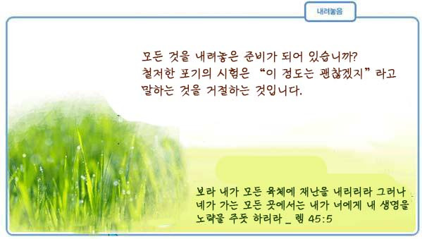 어느 사업가가 사업을 시작한 지 얼마 되지 않아 크게 성공을 했습니다. 재물과 명예를 한꺼번에 얻은 그는 얼마 후 예수 그리스도를 마음속에 영접했습니다. 그러나 그가 그리스도인이 된 이후로는 뭐든지 잘 되는 일이 없었습니다. 문제가 꼬리를 물고 일어나 그를 괴롭혔습니다. 그러나 그는 결코 낙담하거나 절망하지 않았습니다. 그는 오히려 하나님께서 당신의 나라에서 필요한 중요한 책임을 자기에게 맡기실 준비를 하시는 것이라고 믿고 즐거워했습니다. 우리의 삶 속에는 항상 시험과 문제가 도사리고 있습니다. 그 시험과 문제에 어떻게 반응하느냐는 자신에게 달려 있습니다. 우리는, 절망하며 낙담할 수도 있고, 믿음으로 강하게 문제를 극복할 수도 있습니다. 곤경에 빠질 때마다, 슬픔을 당할 때마다 하나님의 권고의 말씀을 기억하십시오. 온유하시고 사랑이 많으신 하나님은 우리가 필요로 하는 모든 것에 관심을 가지고 계십니다. 하나님께서는 아마도 당신이 시험에 직면하게 되었을 때, 전보다 더욱 주시하실 것이다. 하나님의 주시하시는 시선을 잊지 말라 약 1:12 시험을 참는 자는 복이 있도다 이것에 옳다 인정하심을 받은 후에 주께서 자기를 사랑하는 자들에게 약속하신 생명의 면류관을 얻을 것임이니라 1. 카페지기의 거리에서 찬양하며 영혼을 구원하고 치유하는 사역을 잘 감당할 수있도록 기도를 부탁드리며 사역을 위한 필요한 것들이 채워질 수 있도록 위해 기도를 부탁드립니다. 제목 : 시련을 이기는 삶 본문 : 약1:2 시험이나 곤경에 처하게 되기를 원하는 사람은 없지만 누구의 삶에나 이것들이 찾아올 가능성의 문은 항시 열려 있습니다. 순풍에 돛을 달고 출항한 배가 갑자기 몰아닥친 광풍으로 인해 어려움을 당하게 되듯이 인생에 찾아오는 시련들도 유사합니다. 때문에 이에 효과적으로 대처하는 법을 배워야 합니다. 예비 지식이 전혀 없는 상태에서 곤경에 처하면 흔들리기 쉽고 판단력이 흐려져 좌초할 수도 있습니다. 1.기쁘게 여겨야 함(살전5:16) 1)하나님을 인정하는 태도 자신을 곤경에 빠뜨리는 불합리한 환경 속에서 기뻐할 수 있다는 것은 범사에 하나님을 인정하는 경건한 태도입니다. 우리는 입술의 신앙고백과 실제 생활 사이에 상당한 거리가 존재하는 기독교인들을 많이 볼 수 있는데, 특히 시련에 봉착하게 될 때에 이러한 현상들이 두드러지게 나타납니다. 낙심하여 시험에 드는 사람들이나 주변 사람들 혹은 환경을 원망하는 이들, 피하려 숨으려고만 하는 부류의 사람들은 모두가 신앙에 문제가 있다고 진단해야 합니다. 성경은 '세상 끝날까지 우리와 항상 함께 계신다'고 하신 주의 약속을 기록해 주고 있습니다(마28:20). 그렇다면 우리가 당면하게 되는 삶의 모든 정황은 주와 무관치 아니하므로 그분을 찬양하고 그분께 영광을 돌리는 것이 합당합니다. 최대의 시련에 직면한 욥에게서 우리는 이같은 모습을 발견할 수 있습니다. 2)현실을 수용하는 태도 현재의 여건이 자신의 기대와 정반대일 때 다수의 사람들이 몹시 실망스러운 표정을 지으며 당황하게 됩니다. 도저히 수용하기가 어렵다는 태도입니다. 성도는 여하한 경우에도 이런 것을 배우지 않도록 주의해야 합니다. 주께서 함께 계심과 우리를 사랑하심을 믿는다면 현실이 우리에게 최상임을 인식하고 기꺼이 수용해야 합니다. 실의에 빠져 좌초하는 사람들의 가장 큰 문제는 현실을 수용하기가 어렵다는 점입니다. 모세는 홍해라는 현실을 그대로 받아들였고 아브라함도 심각한 기근이라는 현실을 그대로 수용했습니다. 어려움은 누구에게나 그리고 언제나 따를 수 있습니다. 문제는 이를 어떻게 수용하는가에 달렸으며, 현실을 기꺼이 받아들이는 이들은 시련의 크기에 관계없이 쉽게 극복할 수 있습니다. 2. 도약의 기회로 삼아야 함(롬8:28) 1)더 빨리 가게 됨 시련에 처하게 되면 다른 일에 마음을 빼앗길 겨를이 없으므로 목적지를 향하여 더 빨리 나아가게 됩니다. 하나님께서 그 사랑하시는 자녀들에게 시련을 주시는 데는 그만한 까닭이 있음을 알아야 합니다. 그분은 우리가 고통스러워하는 것을 보시면서 쾌감을 느끼는 악취미를 가지신 분이 아닙니다. 이를 통해서 우리가 잡념을 떨쳐 버리고 목표를 향해 달음질에만 전념케 하시려고 허락하시는 것입니다. 무슨 일이든지 전념하게 되면 속도도 빨라지고 질적으로도 우수하게 마련입니다. 바울은 하나님께서 그 사랑하시는 자들에게는 '모든 것이 합력하여 선을 이루게 하신다'고 증거한 바 있습니다. 우리가 만나게 되는 모든 시험이나 시련도 도약의 기회로 주어진 것임을 알고 감사해야 합니다. 2)유익한 경험 바다에 나가서 심한 폭풍과 싸운 경험이 많은 선장은 위기 관리에 능합니다. 같은 상황에서 벗어난 경험이 여러번 있기 때문입니다. 이러한 지식은 대학의 강의실이나 백화점 진열대에서는 결코 얻을 수 없습니다. 시련을 극복한 경험만이 이 지식을 가지게 합니다. 따라서 다른 사람이 당하지 않는 어려움을 당하게 되더라도 불평해서는 안됩니다. 이는 그들이 얻을 수 없는 값진 지식을 얻을 기회이므로 소중히 여기고 감사하는 것