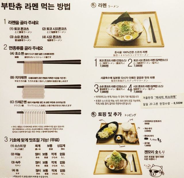 부탄츄는 라멘집인데 다른 일본라멘과는 다르게 엄청 국물이 진한게 매력입니다.