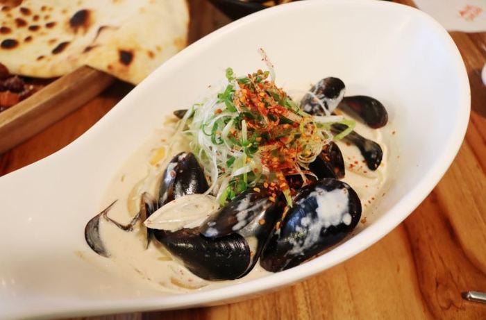 크림 소스도 넉넉하고 홍합 새우 오징어도 듬뿍 들어있고 무엇보다 고춧가루?가 있는데 느끼하지 않고 은근 칼칼하게 먹을 수 있다