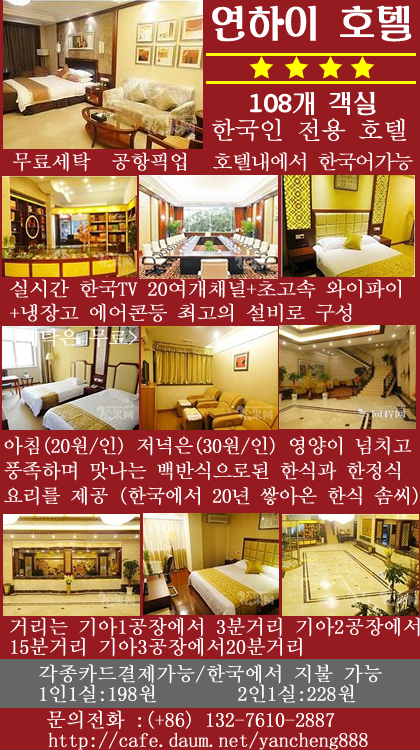 중국 염성 한인전용 연하이호텔 4성급표준 작성자파란만장|작성시간13.12.21|조회수65 목록 댓글 0 글자크기 작게가 글자크기 크게가 다음검색 현재 게시글 추가 기능 열기 북마크 공유하기 신고 센터로 신고 댓글 댓글 0 댓글쓰기 답글쓰기 댓글 리스트