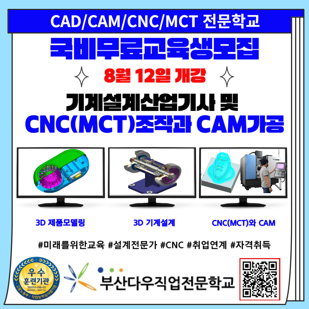 #부산취업학원 #부산직업교육 #부산취업교육 #부산구직자학원 #부산실업자학원 #기계설계학원 #부산기계설계학원 # #부산실업자교육 #기계설계산업기사 #부산기계설계산업기사 #전산응용기계제도기능사학원 #기계설계기사학원 #부산cnc학원 #부산mct학원 #부산cam학원 #부산캠학원 #부산캐드학원
