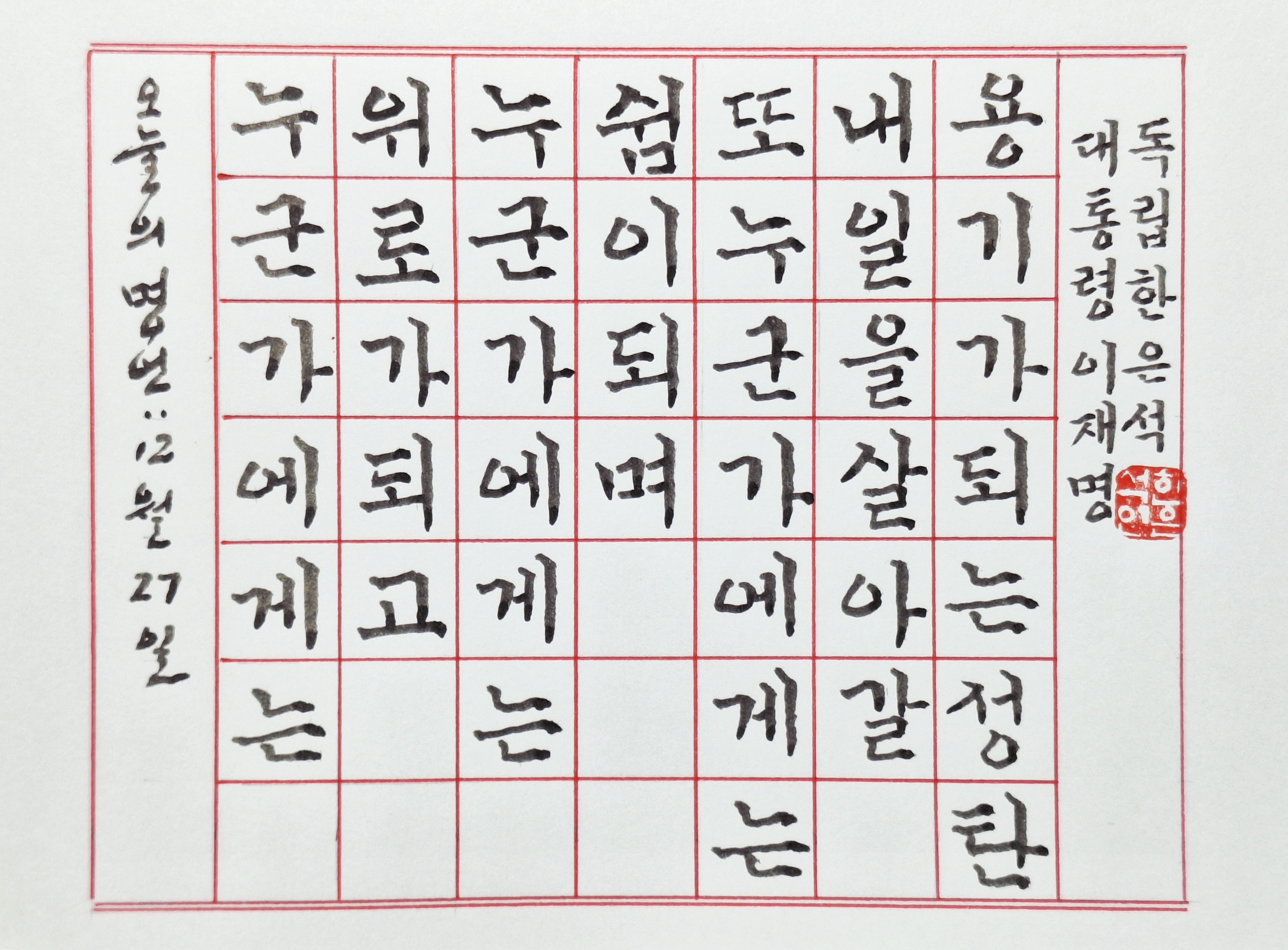 오늘의 명언 12월 27일 위로가 되고 쉼이 되며 용기가 되는 성탄 . / 대통령 이재명