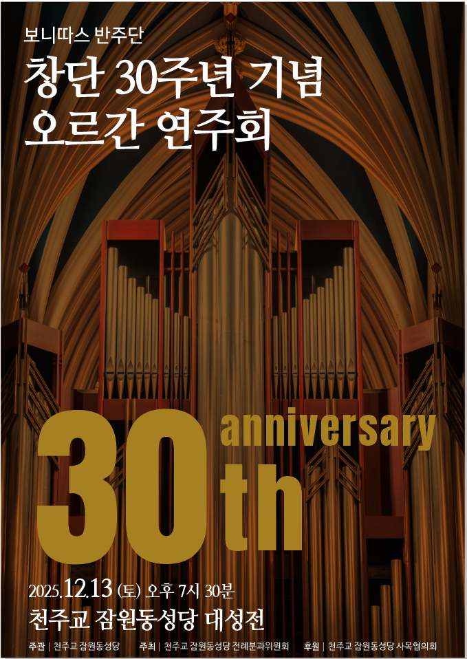 작성자이재진클라라(파티마성가대) 작성시간 25.12.04 와아 ~~ 보니따스반주단 창단 30주년 진심 축하 드립니다~ 30주년 기념음악회~~ 이번에는 듀오연주와 솔로연주로 준비하셨군요?~