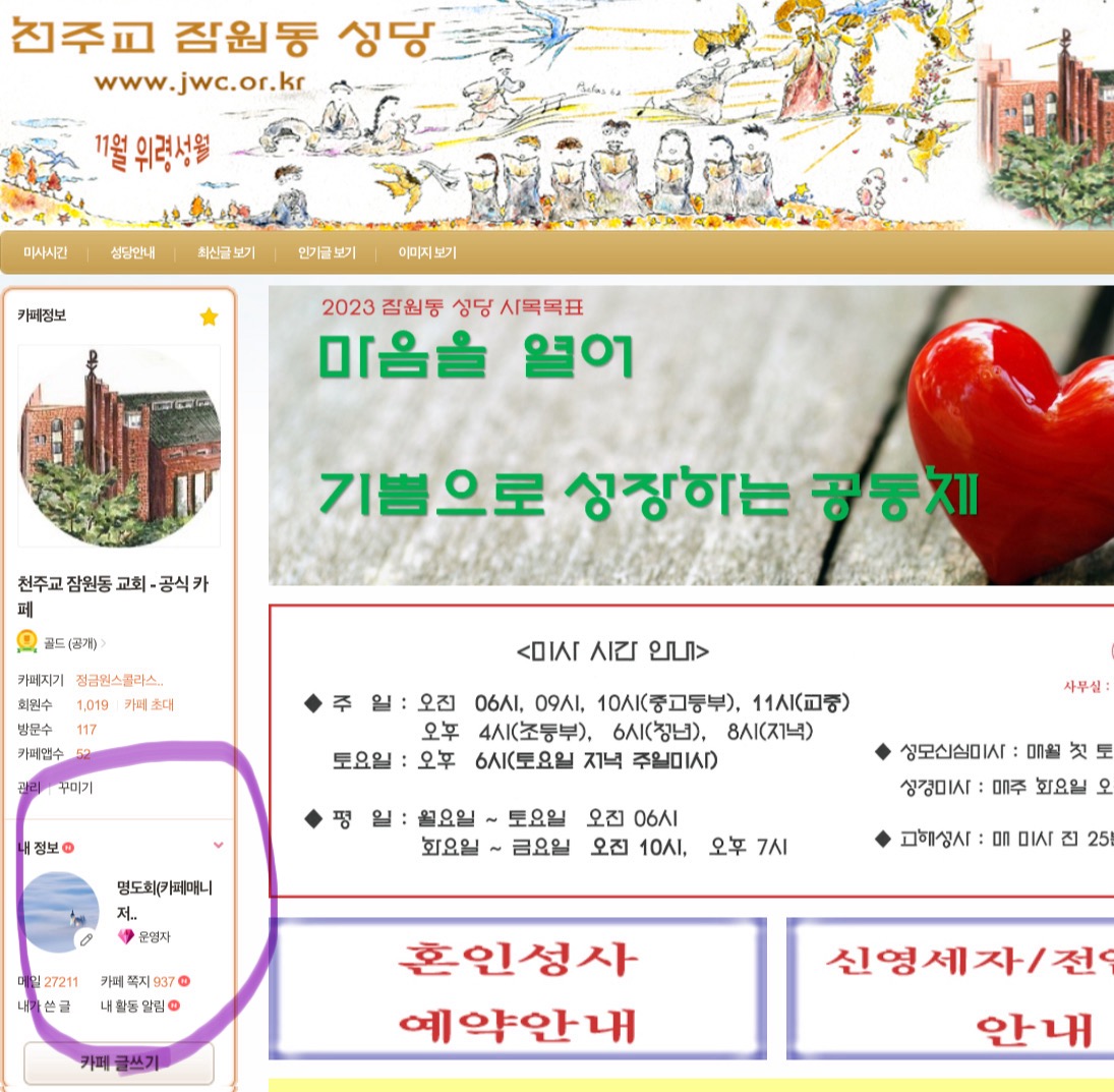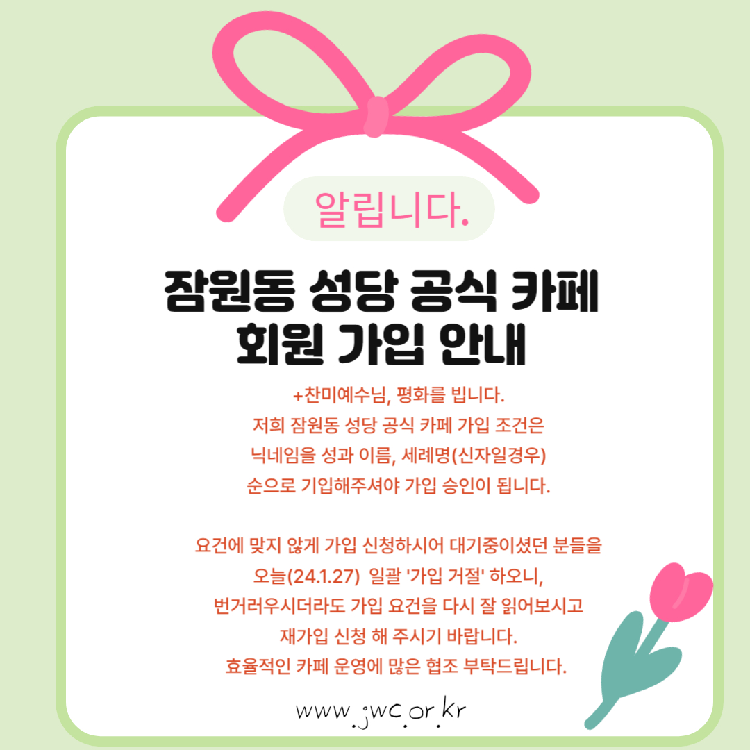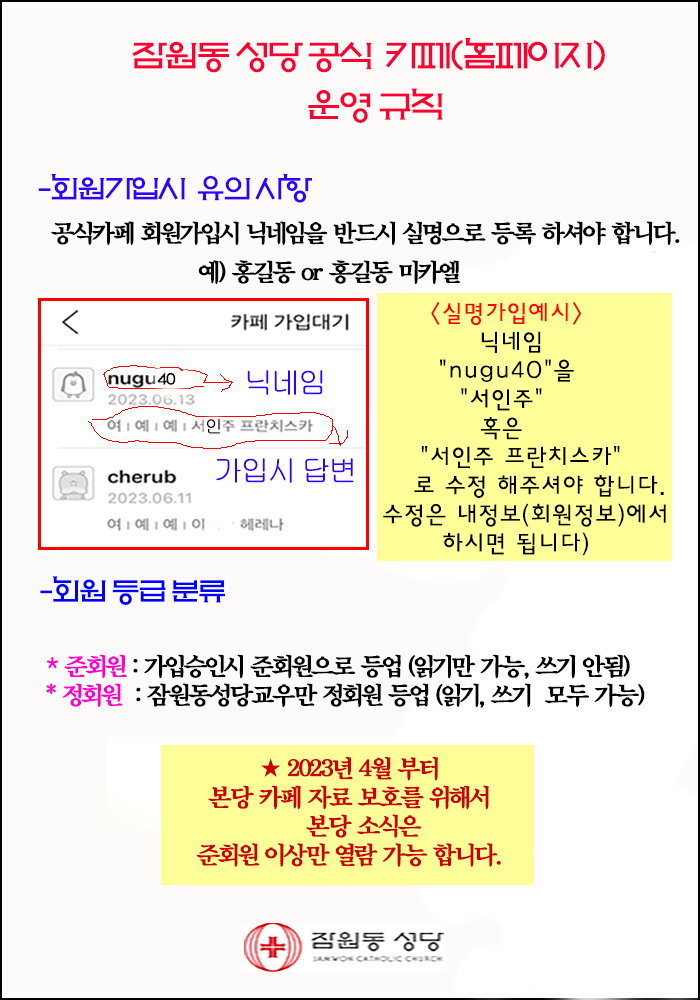 <잠원동 성당 공식 카페 회원가입>에 대해서 알려드립니다.