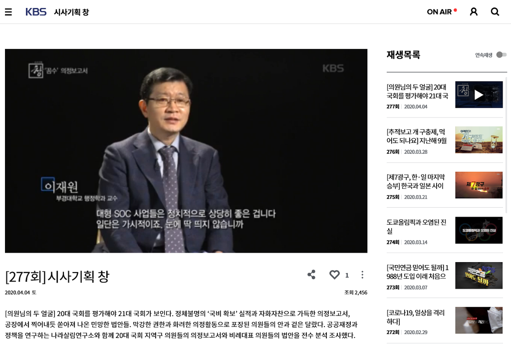KBS 시사기획창 프로그램에 인터뷰한 영상이 잠시 나옵니다. 40분 이상 인터뷰 녹화했는데, 실제 화면에서는 순식간에