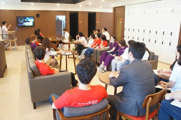 아이시티 안과에서는 아마리스 레드의 성능을 접하고 발빠르게 장비를 도입했습니다. 장비를 이용하여 수술을 진행하는 의료진 뿐 아니라 검안사, 간호사를 포함한 아이시티의 모든 직원이 함께 아마리스 레드 장비에 대한 정보 습득을 위해 세미나를 개최했습니다.