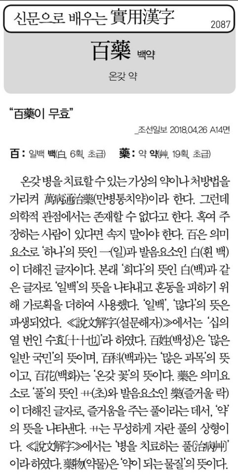 실용한자 (백약 百藥) 작성자green|작성시간18.10.25|조회수9 목록 댓글 0 글자크기 작게가 글자크기 크게가 다음검색 현재 게시글 추가 기능 열기 북마크 공유하기 신고 센터로 신고 댓글 댓글 0 댓글쓰기 답글쓰기 댓글 리스트