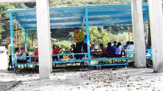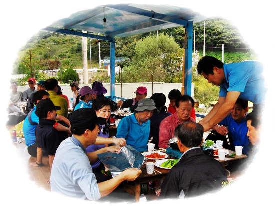 삶은 고구마와 과일을 간식으로 나누어 먹고 경사가 심한 범울이계곡 능선을 조심스럽게 내려와 호숫가 평상에 불판을 지피고 다정한 산우들과 명품 오겹살을 처음처럽 맛나게 구어 먹고 중천의 떠있는 햇살을 피해 야탑에서 에이스팀들과 전날의 결례를 변명하는 종로빈대떡 회식을 베풀었다.