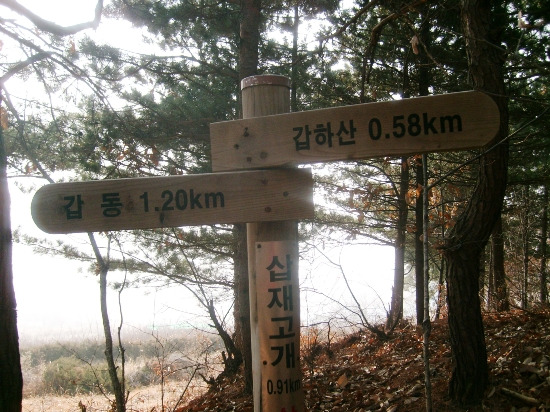 ▶ 1번 국도를 옆구리에 끼고 나란히 뻗어내려 온 능선 끝자락에 나지막하게 솟아있는 갑하산 정상은 표지석도 없이 쓸쓸하기만 한데 발아래 국립현충원이 자리를 잡아 이름값을 하는 듯 하지만 아마도 갑하산의 주봉은 우산봉인가 보다.