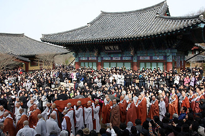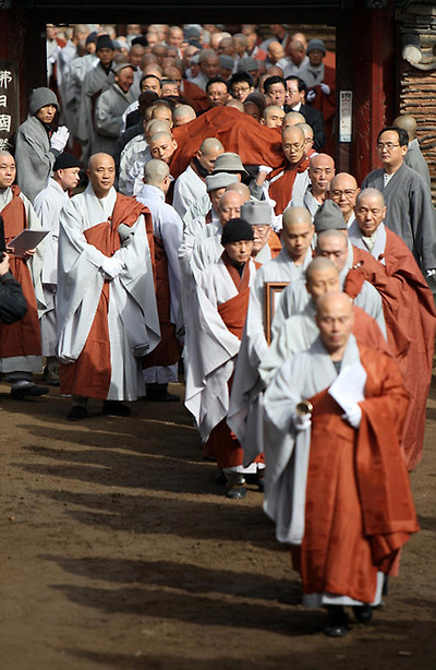 ▲ '무소유'의 법정 스님의 다비식이 거행된 13일 오전 전남 순천시 송광사에서 법정