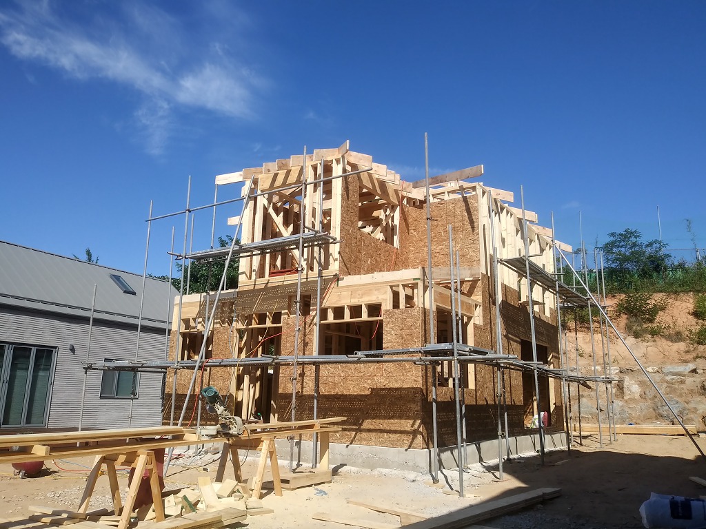 일반구조목의 단점인 함수율과 인장강도 구조적 강도에 대한 단점을 보완한 합판형 적층 구조목인 공학용목재 LVL(laminated veneer lumber)을 사용하여 신개념의 목조주택을 구축합니다