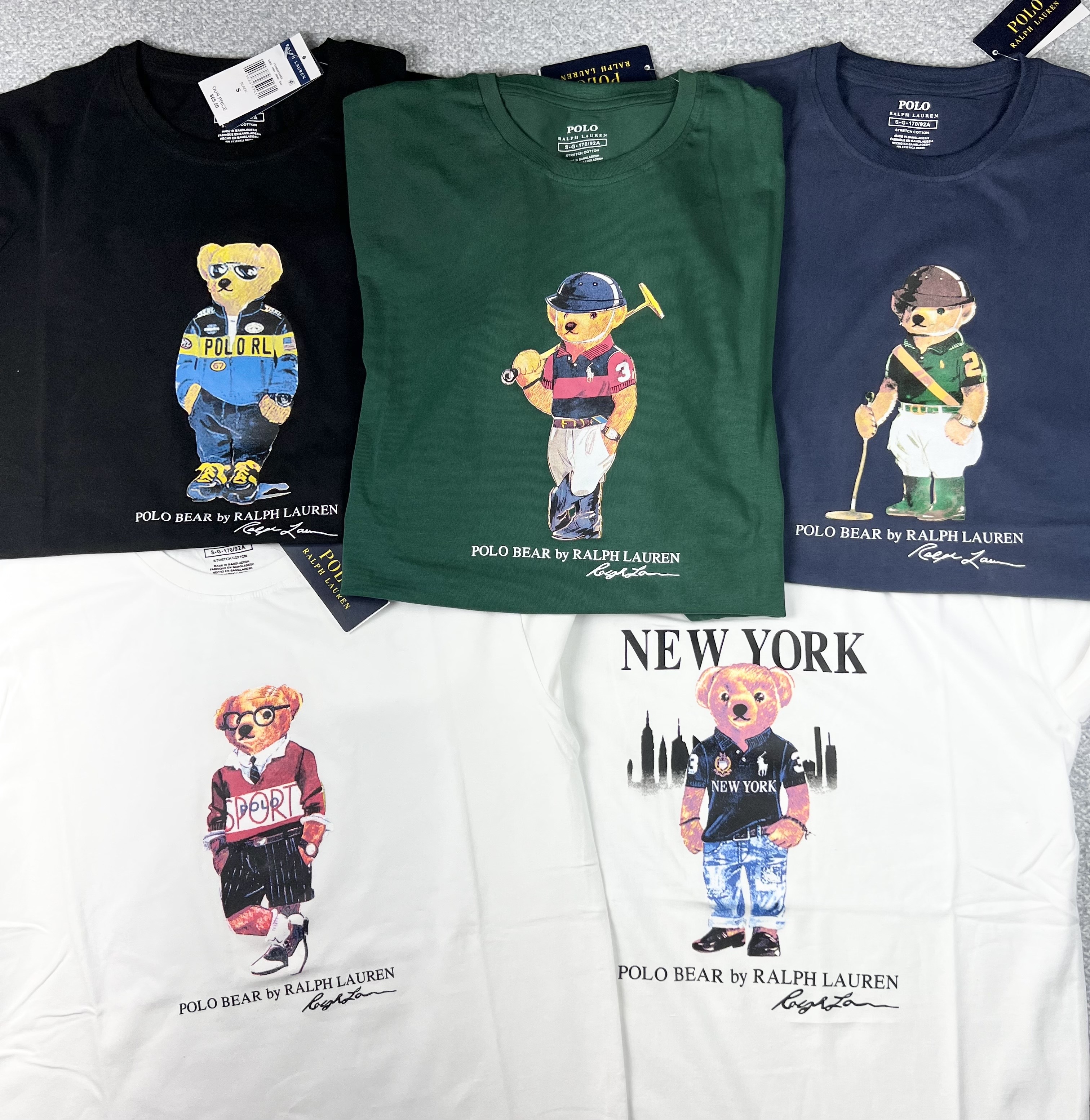 [색상] 블랙 , 그린 , 네이비 , 화이트 (뉴욕곰돌이) , 화이트 (스포츠곰돌이) ( 5 종 ) 입니다.